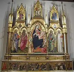 Mariotto was a member of the Physicians and Apothecaries Guild sometime between 1386 and 1408, and was also a member of the Company of Saint Luke in 1408.[3] Many extant documents show that he was a popular and much sought after painter in both public and private affairs in Florence. Mariotto is thought to have been principally responsible for the artwork in the cathedral, although most of these paintings have since been tarnished.[2] Mariotto was an avid altarpiece painter, and in 1398 he painted an altarpiece for the chapel of the Madonna della Neve in Florence, commissioned by the Board of Works. He began working on this piece in 1397 and was compensated with 15 florins in partial payment for the creation of the panel for the "opera" of Saint Reparata for the altar of the new chapel of the Virgin Mary.[3] He also painted an altar piece for the Florence Cathedral around 1402–4.[2] Mariotto's uncle, Jacopo di Cione, acted as a guarantor on behalf of Mariotto for the cathedral workshop on 2 May 1398.[4]