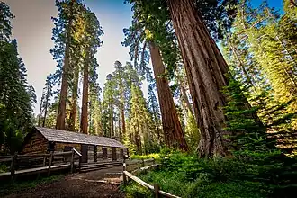 The Mariposa Grove Museum stands on the site of the original Galen Clark Cabin. In 1930, the National Park Service built the current structure to display museum exhibits about the grove's history.[9][10][11]