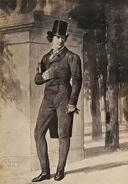 Marius meets Courfeyrac, a fellow student, who introduces him to a society called the Friends of the ABC, a political group committed to republican revolution. Almost immediately, Marius' Bonapartist beliefs come into conflict with the republican views of the group's members. Marius nevertheless remains on good terms with them—especially Courfeyrac, with whom he lives for a time. "In a few days," Hugo writes, "Marius was the friend of Courfeyrac... Marius, in Courfeyrac's presence, breathed freely, a new thing for him."[1] Marius descends further into poverty and, despite all his hardships, manages to complete his studies and become a recognized lawyer. On Courfeyrac's advice, he learns German and English in order to work for a publisher translating manuscripts into French.