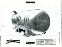 At 12 feet 4.37 inches (3.77 m) long, 58.48 inches (1.49 m) in diameter, an 80.9 inches (2.05 m) span over the fins, and weighing 17,600 pounds (8,000 kg), the Mk 21 was half the length and less than half the weight of the Mk 17/24 weapons it replaced. The Mk 21 Y1 had a yield of 18 to 19 megatons. The "clean" Mk 21 Y2 (later designated Mk 26) was tested at 4.5 megatons. All 275 Mk 21 weapons stockpiled were the Y1 version.[2][3]