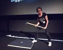 Cousins took an axe to his own film Bigger Than The Shining after screening to a live audience at the 2017 International Film Festival Rotterdam (IFFR), with the intention of never screeining it again since this was the only copy of the film.[23]