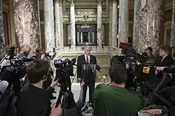 The 2003 lawsuit Office of Senator Mark Dayton v. Brad Hanson involved an accusation of wrongful termination by Brad Hanson, who worked as State Office Manager for Dayton, and who was fired shortly after taking medical leave for a heart problem. Hanson sued under the Congressional Accountability Act of 1995, claiming that Dayton had discriminated against him because of a perceived disability. Dayton argued that he was immunized from suit by the speech or debate clause of the United States Constitution.[23] Dayton claimed that Hanson's duties were directly related to Dayton's legislative functions, and that the decision to fire him could not be challenged. The District Court denied the motion, and the case went all the way to the Supreme Court of the United States, where oral arguments were heard on April 24, 2007. The Supreme Court ruled 8–0 that it lacked jurisdiction to hear the appeal and dismissed the case, declining to grant certiorari.[24][25] Dayton reached a settlement with Hanson in 2009, shortly after Dayton became a candidate for governor.[26]