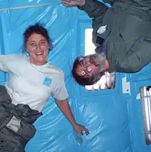Shelhamer earned his Bachelor of Science and his Masters in electrical engineering in 1982 from Drexel University. Intrigued by his father's pacemaker and how it applied electrical engineering principles to a biological system,[7] he attended Massachusetts Institute of Technology for biomedical engineering and earned his ScD in 1990.[8] At MIT, Shelhamer worked with Dr. Laurence Young on sensorimotor physiology and adaptation with an emphasis on the vestibular and oculomotor systems.[9] He applied nonlinear dynamical analysis to the control of eye movements, including investigations on the functional implications of fractal activity in physiological behavior.[1][10] In parallel with this research, he studied astronaut adaptation to space flight and participated in two sets of Spacelab experiments (SL-1 and D-1).[8] During this time, he flew on 80 parabolic flights with NASA's parabolic aircraft, also called the "vomit comet".[11]