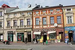 Tenement house no. 9 draws attention on the northern frontage of the Market Square. It originally belonged to the Herz family. The façade of this house is decorated with a row of rusticated pilasters. The tenement house no. 10 looks similar, and in the neighboring house the attention is drawn to a wrought-iron balcony. These tenement houses were built in the second half of the 19th century.[1]