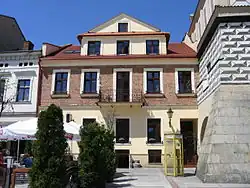 - Rosowska tenement (3 Rynek Street): A two-story tenement with an arcaded porch. Constructed in the 16th century with a vaulted arcade, it replaced an earlier wooden house. Later renovations removed the arcade and altered the second story. A major restoration from 1968 to 1970 reopened the arcade and rebuilt the second story. Since 2013, it has housed the Tarnów Regional Museum.[11] It was listed in the Lesser Poland Voivodeship's register of monuments in 2007.[12]