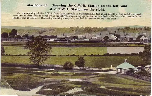 The Marlborough and Grafton Railway was formally taken over by the M&SWJR in 1899, and for the next quarter century Marlborough had regular services on both lines. The April 1910 timetable, for example, shows each line offering about eight services a day, though the GWR did not run trains on Sundays.[8]