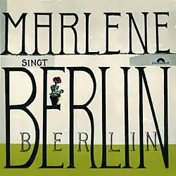 Marlene singt Berlin, Berlin is a studio album by Marlene Dietrich released in 1965.[1][2] The album is Dietrich's homage to the city with which she's most often associated: Berlin.[3] The design for the original cover was done by Marlene herself. Orchestrated and conducted by Burt Grund. Issued on Polydor (catalogue number 238102).[4] Issued in the US by Capitol Records under the title, Marlene Dietrich's Berlin (Capitol ST 10443). Dietrich said this was her best album.[4]