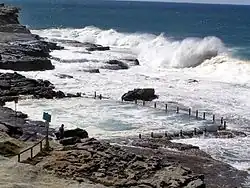 The word "Maroubra" originates from an Aboriginal word meaning "like thunder",[42] which refers to the surf conditions and the sounds of the waves. The length of Maroubra Beach and good surf conditions provide additional photographic opportunities for the local photographers. There are numerous photography guides for Maroubra Beach and Mahon Pool and professional photographers showcase photos from this place as a part of their portfolio.[43][44]
