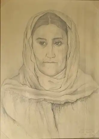 In her late teens she studied painting under (and later married) artist Grigor Vahramian Gasparbeg, who had relocated from Moscow to Tabriz.[1] She practised classical drawing techniques in his studio, producing early black‑chalk heads (Zeus, Apollo, Socrates) and self‑portraits prior to her mature oil work.[2] Her first exhibitions were held in Tabriz and later in Abadan and Tehran (dates variably reported).[2]
