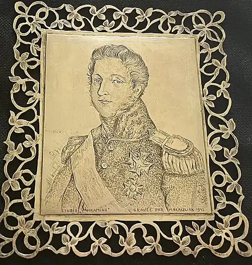 In addition to painting and theatre, Vahramian studied engraving and filigree at a time when the craft in Iran was male‑dominated. Surviving signed silver plaques (e.g. an interpretation of the Brothers Grimm's "Golden Bird" and military portrait miniatures) illustrate her adaptation of narrative and mythological subject matter into metalwork.[1]