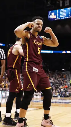 After his second season in college, Townes announced that he transfer to play for the Loyola Ramblers.[11] He sat out in the 2016–17 season due to National Collegiate Athletic Association (NCAA) transfer rules.[11] On November 24, 2017, he scored a season-high 23 points to help beat UNC Wilmington.[12] At the 2018 NCAA tournament, Townes helped Loyola, an 11-seed, make a Cinderella run to the Final Four.[13] In the team's Sweet 16 match-up with Nevada, he made the game-clinching three-pointer with 6.3 seconds left in regulation.[14] With his success in the tournament, he garnered national attention, being featured in the New York Post and Chicago Tribune.[15][7]
