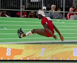 Marquis Dendy (born November 17, 1992) is an American track and field athlete, primarily known for horizontal jumping events.[1][2] He is the 2015 National Champion in the Long jump. His winning jump, of 8.68 m (28 ft 5+1⁄2 in), though wind aided at +3.7mps, his first jump of the competition, was the longest jump in the world under any conditions in over 5 years.[3][4][5] He grew up in Middletown, Delaware.[6]