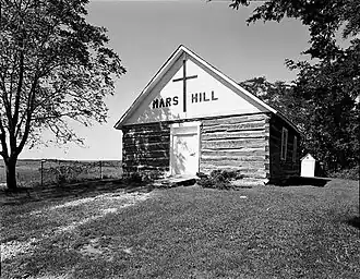 Mars Hill is a historic church building and cemetery located near Ottumwa, Iowa, United States. Barbara Clark donated the property to the Baptist Church and the church building was built between 1850 and 1857. The rectangular structure is composed of dovetail notched hewn logs, and it is capped with a gable roof. The front door is a copy of the original. It is thought that its name comes from its location, but that cannot be substantiated.[2] Local lore has it that the church building served as a stop on the Underground Railroad. The property was listed on the National Register of Historic Places in 1974.[1]
