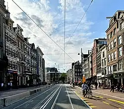 The Martelaarsgracht is an extension of the Nieuwezijds Voorburgwal and runs in a northeastern direction to the Prins Hendrikkade and the Stationsplein in front of Central Station. Hekelveld square separates the Martelaarsgracht from the Spuistraat. The Martelaarsgracht has been a short but wide and busy street since the canal was filled in 1884, and has been an electric tram route since 1906. The street has a central reservation with escape walls for the tram, but there is no longer a stop. There are, among other things, hotels, snack bars and internet cafés.