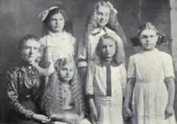 Martha Jane Cunningham with five students in Sault Ste. Marie in the 1910s, from a 1917 publication