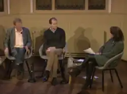 ![]() Bolkestein (centre) during a panel discussion in 2018 | |