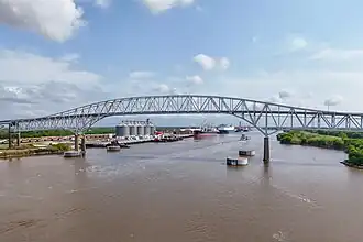 The Martin Luther King Bridge, of Port Arthur, Texas, is a cantilever bridge spanning the Sabine-Neches ship canal. It was opened in 1970 as the Gulfgate Bridge,[1] and allows Texas State Highway 82, a short (13 miles (21 km)) highway, to cross the canal and continue on Pleasure Island to the Texas-Louisiana border, connecting Port Arthur to Louisiana Highway 82.[2]
