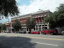 After the American Civil War, freed slaves began to settle in the area, which had become known as Frogtown, due to the proliferation of frogs that appeared in the neighborhood after rains. It became a thriving black business district, with movie theaters, markets, grocery stores, funeral homes, shoe repair, tailors, insurance companies and financial institutions;[6] in the 1960s, however, an overpass was built, connecting the eastern terminus of Interstate 16 to Montgomery Street.[7] This negatively affected trade.[8][9][10] Savannah's Union Station, which once stood on what was then West Broad Street, was demolished in 1963 as part of the development.[8] The area is now known as an Enterprise Zone, with the City of Savannah offering financial incentives to businesses that opt to invest in the area via land improvement and/or the creation of jobs.[11]