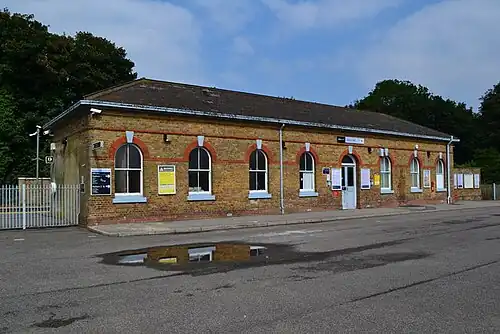 The station was host to a Southern Railway camping coach from 1938 to 1939.[7] Two camping coaches were positioned here by the Southern Region from 1954 to 1959, then three coaches in 1960 and 1961 then they were replaced by three Pullman camping coaches from 1962 to 1967.[8]