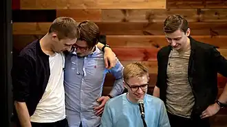Martin S. (Belarusian: Марцін С.[1]) is a music band formed by members of MoZart (Belarusian: Моцарт), the band had existed since 2003, in 2011.[2] It is the winner of the 9th BSU Open Music Festival "Such gingerbreads" (2012).[3] In 2012 it was honored as "Breakthrough of the Year" (2nd place) presented by Tuzin.fm.[4] The band released two studio albums: "Martin S." on 12 tracks (2012) and "Pieršy" on 9 tracks (2015); three singles: "Chutkija" (together with Ksienija Žuk from Naviband) (2013), "Pampieja" (together with Iver) (2014), "Novy Dzień" (2019); one EP: "Nie Zabyć Pamylki Nikoli" on 4 tracks (2014).