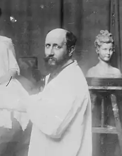 Back in Berlin, he worked at the porcelain factory for a year. In 1897, he won the "Grand State Prize" from the Prussian Academy of Arts and went to the Villa Strohl-Fern in Rome, where he spent a year and a half.[1] After 1899, he worked as a freelance sculptor in Berlin's Schöneberg district. In 1900, he became a member of the Freemasons lodge, "Zum goldenen Pflug" (golden plow).