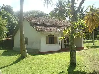 Located on the grounds is the Martin Wickramasinghe Samadiya where the ashes of Wickramasinghe and his wife Prema Wickramasinghe are buried. It is a grass covered mound to the right of the house, surmounted by a rock from the Koggala reef, where he had spent many hours of his childhood.[3]