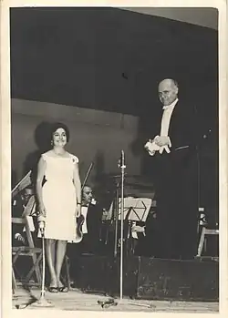 Her debut as a singer was at the Jerez Orfeón, with whom she participated in numerous concerts: zarzuelas, sacred music, and some novelties such as Las tres Cantigas de Alfonso X el Sabio.[1] She also appeared with the group Aficionados Líricos Reunidos,[2] who performed every Sunday at the Teatro Villamarta, promoted by Agustín Brotón.