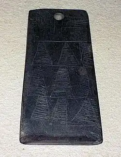 Further, ideograms - notably, repetitions of spirals - point to both abstract ideas, religious observance, and some astronomical knowledge of lunar and solar cycles. Decorative objects - rock crystal arrowheads, floral- and zig-zagged patterned stones (pedras de raio) and ceramics, deity sculptures - also suggest the development of local systems of craftsmanship, hierarchy, magic and celebration.[13] Recent studies of idol plaques have speculated that they depict some kind of owl deity, with their engravings acting as a means to identify the individual buried by clan, marriage and lineage.[14]