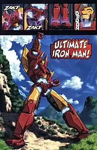 Tony Stark later returns, having been reduced to a head, in an advisory role to the Avengers. Iron Man also appears in the form of several large robots that combine into a larger mecha, which he calls Ultimate Ironman. Ultimate Iron Man reappears in Volume 2, where it is destroyed in combat with T'Channa, the sister of Black Panther and the second Doctor Doom.