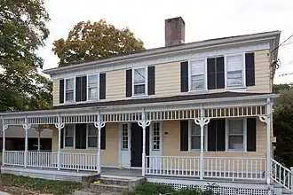 The Marvin Tavern, also known as Matthew Marvin House, is a historic house located at 405 Danbury Road in Wilton, Connecticut, Located adjacent to Wilton High School. It is a 2+1⁄2-story wood-frame structure, with a hip roof and a large central chimney. Although it was built c. 1760, its most prominent feature is its porch, added c. 1880, which features turned posts, a spindled frieze, and decorative jigsawn brackets. It is also of interest to architectural historians for a number of features, including its flared eaves, which were rare in the region before the 19th century.[2]