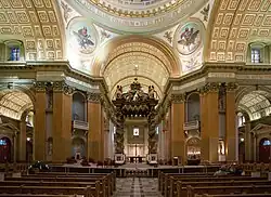Covering the altar, which is located under the dome, is a neo-baroque ciborium or baldaquin, with twisting columns. It was created in Rome in 1900 by Joseph-Arthur Vincent and is a reproduction of the famous 'baldacchino' in St. Peter's Basilica, created by Gian Lorenzo Bernini.