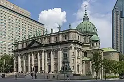 Mary, Queen of the World Cathedral or in full Mary, Queen of the World and St. James the Great Cathedral is a minor basilica in Montreal, Quebec, Canada, and the seat of the Roman Catholic Archdiocese of Montreal. It is the third largest church in Quebec after Saint Joseph's Oratory (also in Montreal) and the Basilica of Sainte-Anne-de-Beaupré east of Quebec City. The building is 101 m (333 ft) in length, 46 m (150 ft) in width, and a maximum height of 77 m (252 ft) at the cupola, the diameter of which is 23 m (75 ft).