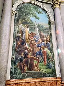 - Father Barthélemy Vimont saying the first Mass in Montreal on May 18, 1642. Paul de Chomedey, Sieur de Maisonneuve and Jeanne Mance, the co-founders of Montreal, can be seen attending the Mass. This work by Ernest Laurent was a gift from the French government to Paul Bruchési.