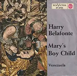 "Mary's Boy Child", also known as "Mary's Little Boy Child", is a 1956 Christmas song written by Jester Hairston.[6] It is widely performed as a Christmas carol.