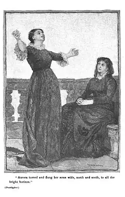 This girl-poet, Aurora Coronari, with the starry eyes and the beautiful soul, is in one sense scarcely so prominent a figure as others in the story, and yet she is felt continually as the bright pervading presence of the whole. It is a lovely picture, that of the fine old man Glenlyon between the two fresh, young shapes of Aurelia and Aurora, "morning-gold and morning-red." The English girl, with her passionless nature, her cool gentleness, her tranquil affectionateness, is a very delicately-contrived foil to the Italian girl whose soul is all one pure, ardent flame of enthusiasm for the beautiful and true.