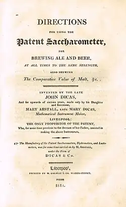 - ^ "Directions for Using the Patent Saccharometer, for brewing ale and beer, at all times to the same strength..." Biblio.co.uk. Retrieved 2023-06-19.