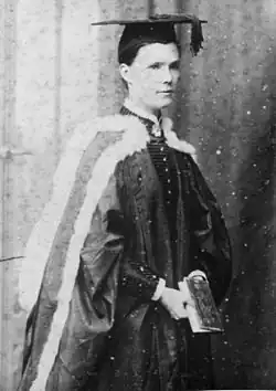 ![]() The graduation ceremony held in the Great Hall in 1885 was the first to have women graduates (two). One was (Mary) Elizabeth Brown. | |