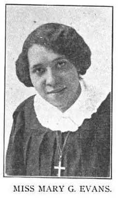 Mary G. Evans (January 13, 1891 – April 12, 1966) was an American Christian minister. Evans is most known for serving as the pastor of Chicago's Cosmopolitan Community Church for 34 years, from 1932 until her death in 1966. She was the first woman to receive a Doctor of Divinity degree from Wilberforce University.[1]