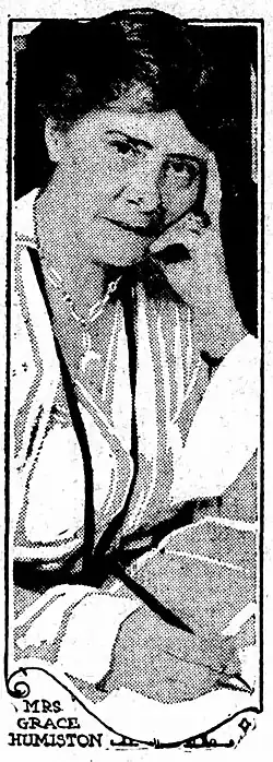 Mary Grace Quackenbos Humiston (née Winterton) (1869–1948) was the first female Special Assistant United States Attorney.[1] She was a graduate of the New York University School of Law and was a leader in exposing peonage in the American South. She was also known for a short time as "Mrs. Sherlock Holmes", starting with her work solving the cold case of Ruth Cruger who disappeared in New York in 1917.