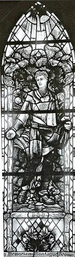 When Frye returned to Boston, She opened her own stained glass studio on Church Street in Cambridge in 1920. In 1922, she created a three-light window for St. Andrew's Anglican Church at La Tuque, Quebec, Canada that shows the influence of Whall's mentorship. [2] In Cambridge, she designed windows at Bertram and Eliot halls in the Radcliffe Quadrangle.[1]