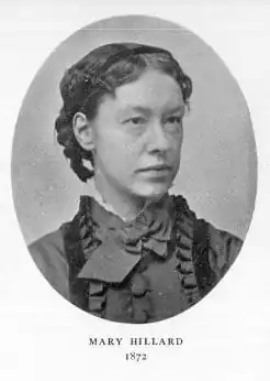 Mary Hillard Loines was born on 4 May 1844 in London, England, to American-born parents John Hillard and Harriet Low, who had emigrated to England soon after they married.[3] The family returned to America in 1848, settling in Brooklyn, New York.[3] For a period following the Civil War, Hillard worked as a teacher for the National Freedmen's Relief Association,[4] helping to educate those emancipated from enslavement.[3] She became a strong advocate for the Tuskegee Institute and the Hampton Institute,[3] both of which were created as educational establishments for African-Americans.[5][6]