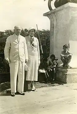 Mary Reynolds Babcock was born in 1908 in Winston-Salem, North Carolina as the second child to tobacco tycoon R. J. Reynolds and his wife Katharine Smith Reynolds. She was preceded by her brother R.J. "Dick" Reynolds Jr; her younger siblings Nancy Susan Reynolds and Zachary Smith Reynolds followed in 1910 and 1911 respectively. The family lived at 666 W Fifth St in Winston-Salem in a palatial Queen Anne mansion, designed by architect George Franklin Barber. Fifth street was labeled as "Millionaire's Row" due to the number of Reynolds family members, high-ups in R.J. Reynolds tobacco company, and other tobacco or textile industrialists who lived there.[1] The house was located conveniently to the offices of R.J. Reynolds Tobacco at the intersection of Fifth and Main.[2]