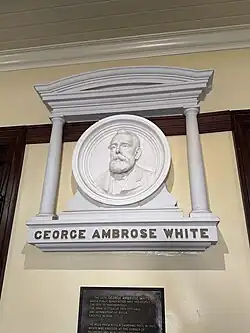 Lack of funds at the Council delayed the construction of a new Town Hall and meetings and business continued in the early timber building until 1908 when the current Town Hall was opened. Funding for the Town Hall was not forthcoming from the Council, but from a local benefactor, Mr George Ambrose White who donated £10,000 for the sole purpose of constructing a new Town Hall. Although generous this gift was to be offset by an annual payment by the Council to Mr White of 5% of the amount. White previously donated money for the construction of a public swimming pool in Maryborough and therefore he was already well known in the local community.[1]
