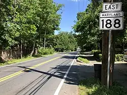 Maryland Route 188 (MD 188) is a state highway in the U.S. state of Maryland. Known as Wilson Lane, the highway runs 3.25 miles (5.23 km) from MacArthur Boulevard near Glen Echo east to MD 187 in Bethesda in Montgomery County. MD 188 runs mainly through residential areas in its course through the affluent suburb of Bethesda. The highway was originally paved in the early 1910s and widened in the mid-1920s.