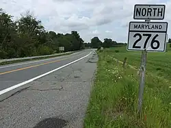 Maryland Route 276 (MD 276) is a state highway in the U.S. state of Maryland. Known for most of its length as Jacob Tome Memorial Highway, the highway runs 7.85 miles (12.63 km) from MD 222 in Port Deposit north to U.S. Route 1 (US 1) near Harrisville in western Cecil County. MD 276 connects Port Deposit with Rising Sun. MD 276 was constructed along an old turnpike from Port Deposit through Woodlawn, then north to Rising Sun to the east of the present corridor. The Woodlawn–Rising Sun piece was paved by 1910; the Port Deposit–Woodlawn stretch was paved in the late 1920s and early 1930s. MD 276 was shifted west to between Woodlawn and its present northern terminus at US 1 in the late 1950s. The highway was completely reconstructed between 1959 and 1965.