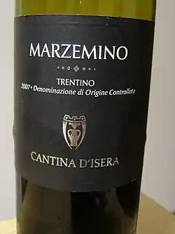 Marzemino is a red Italian wine grape variety that is primarily grown around Isera, south of Trentino. The wine is most noted for its mention in the opera Don Giovanni, the music for which was composed by Wolfgang Amadeus Mozart ("Versa il vino! Eccellente Marzimino!"). The vine ripens late and is susceptible to many grape diseases, including oidium. Wine produced from the grape has a characteristic dark tint and light plummy taste.[1]