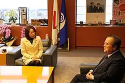 She won a seat in the 2007 House of Councillors election, and served as vice chairwoman of the LDP's judicial committee and chairwoman of the Upper House Committee on Oversight of Administration.[5] Following the March 2011 Tohoku earthquake and tsunami, she put great effort in trying to restore the damaged territories of her native Tohoku region.[6]