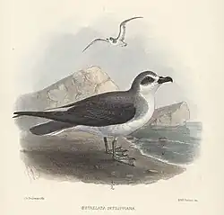 The petrel was first described by Enrico Hillyer Giglioli in 1869 and named in honour of the Italian zoologist Professor Filippo de Filippi.[2] Both these naturalists took part in an Italian government-sponsored scientific voyage to circumnavigate the world in 1866. The vessel returned successfully to Naples in 1868 but de Filippi died in Hong Kong from dysentery during the previous year.[3] Giglioli took over the scientific work of the expedition after the professor's death.[4]