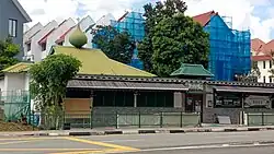 Masjid Hussain Sulaiman is named for its patron, Hussain bin Sulaiman, who collected funds to build a mosque in Pasir Panjang. The funds were used to build a surau (prayer hall) in 1902, which was eventually expanded into a large mosque.[2][3][4][5] A prayer hall for female congregants was added in 1992, while a small dome was added to the roof over the main prayer hall during a renovation in the early 2000s.[2][3][4] Then in 2016, the mosque received an extensive renovation to improve its facilities for its large number of congregants.[2][3]