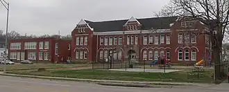 When the school was built in 1888, it was located on the western fringe of Omaha on an unpaved South 24th Street. At the time it was opened, it was the largest elementary school in Omaha, with sixteen classrooms.[3] The first principal was Jennie McKoons, with a staff of five teachers.[3] When it first opened the school had 326 students; however, within a few years it expanded so rapidly that three wooden additions had to be constructed to accommodate the student body. They were replaced in 1936 with a brick addition.[4]